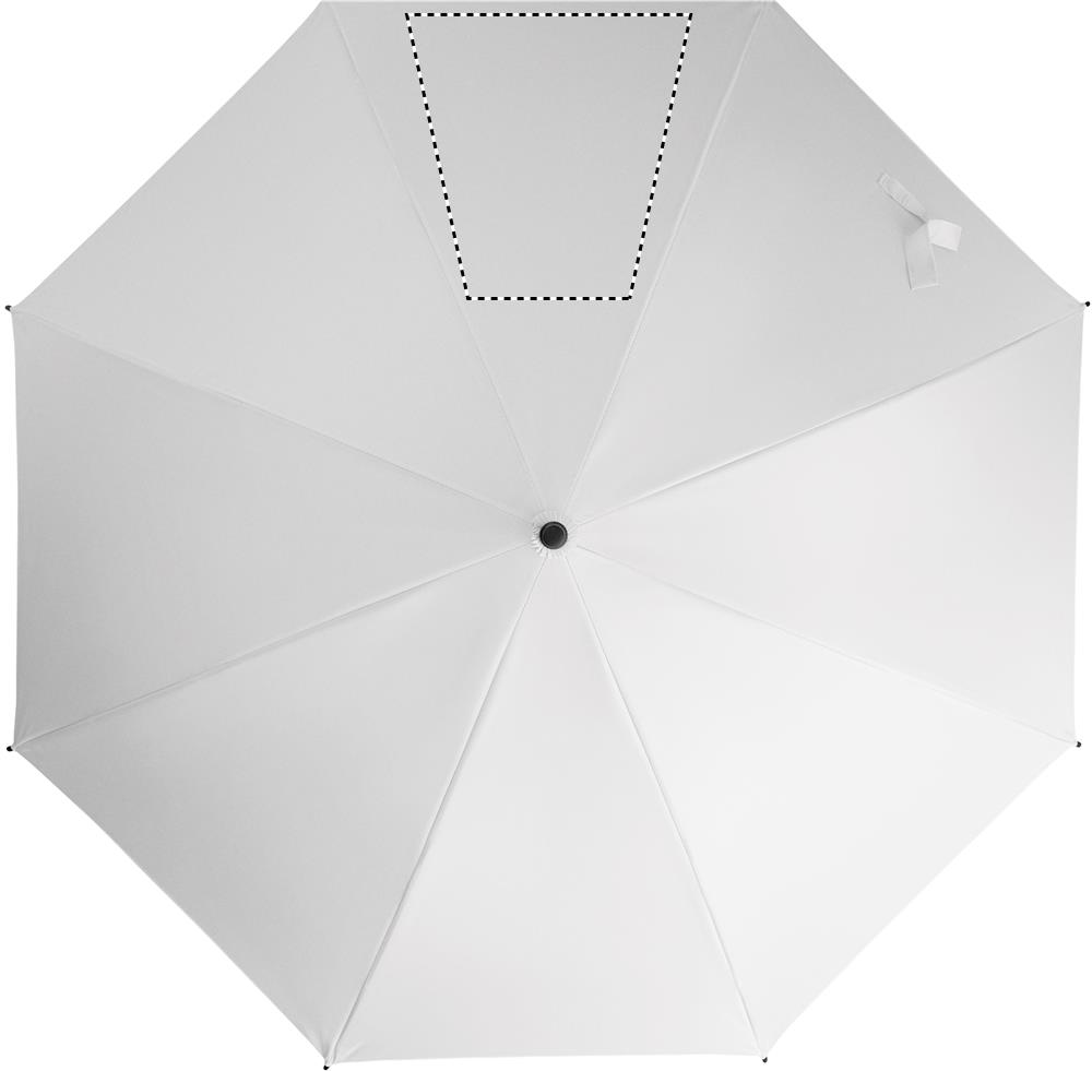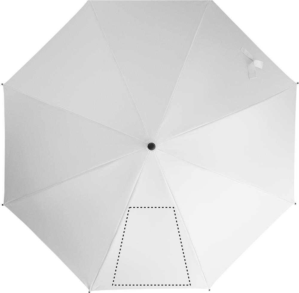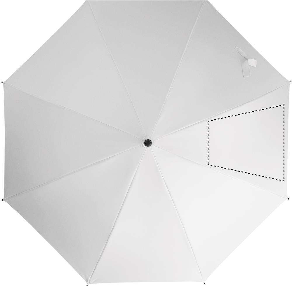 23 inch rechte automatisch openende windproof paraplu met een volledig fiberglas frame en panelen in 190T pongee stof. Plastic tips en bovenkant. Met rubber bekleed PP plastic gebogen handgreep. Handmatige sluiting.