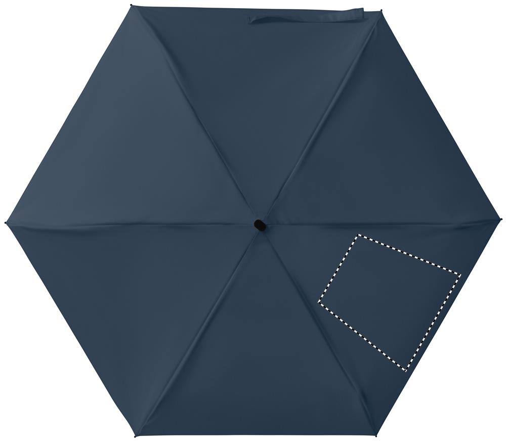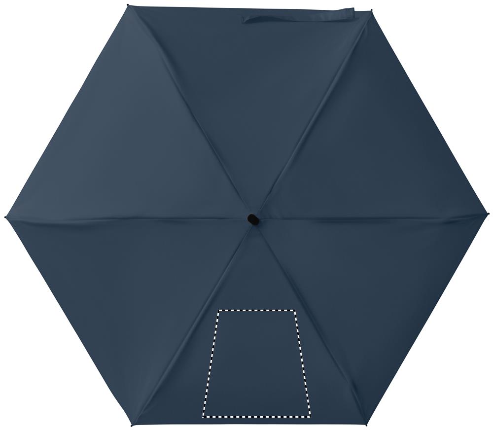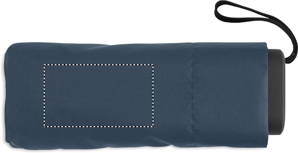 19 inch 5-voudige handmatige paraplu van 190T pongee met bijpassende pouch. Windbestendig frame van metaal en glasvezel, zwart rubberen handvat met polsband en een compact opgevouwen formaat tot 17cm.