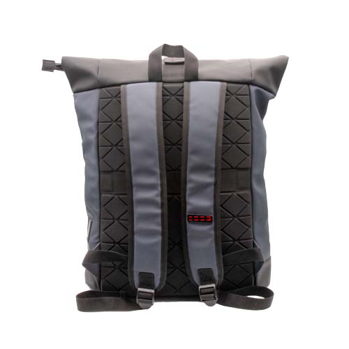 Rugzak met een vak aan de voorkant en een waterdichte rits en gevoerde vakken voor een laptop of tablet. De rugzak heeft een vormvaste structuur en een gevoerde bodem voor een goede bescherming van de inhoud van de tas. Geleverd in een non woven opbergetui.